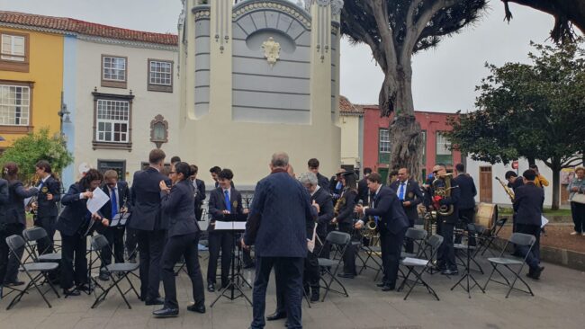 Esta mañana como estaba previsto se celebro el Concierto de Marchas Procesionales a cargo de la Banda de Música «San Sebastián de Tejina», en la Plaza de la Concepción, con la pena que a la mitad se tuvo que suspender por la lluvia.