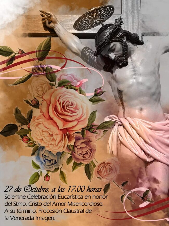 El domingo 27 de octubre a las 17 horas, se celebrara un Solemne Celebración Eucarística en honor del Stmo. Cristo del Amor Misericordioso y a su término una Precesión Claustral de la Venerada Imagen.