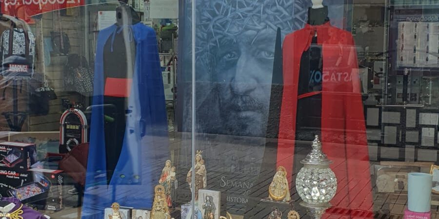 Los escaparates laguneros se empiezan a vestir de Semana Santa. Escaparate de Gonay, en la calle de Herradores.