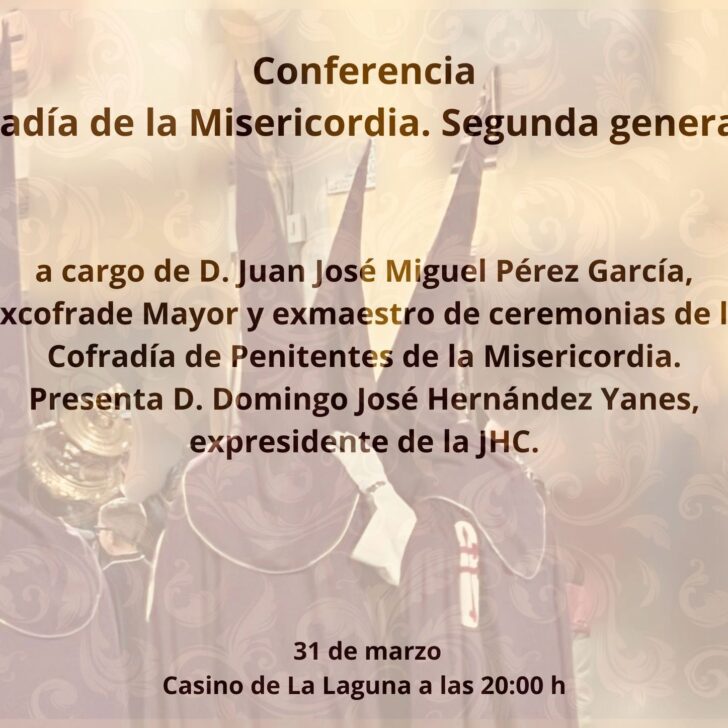 El próximo Lunes 31 de marzo a las 20:00 en el Casino de La Laguna tendrá lugar esta interesante conferencia que no debemos pasar por alto. En ella los cofrades más jóvenes podrán conocer de primera mano datos y circunstancias de la historia de nuestra Cofradía que nos harán sentirnos orgullosos de la institución a…