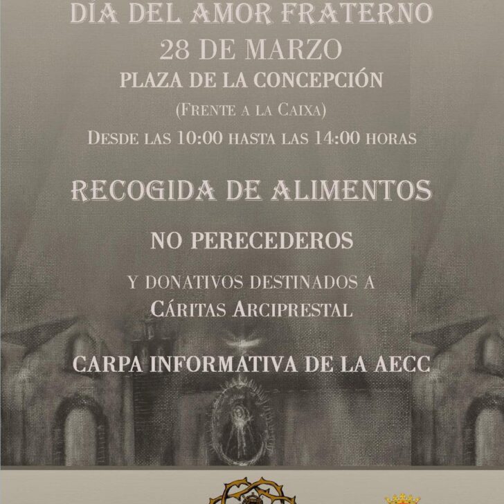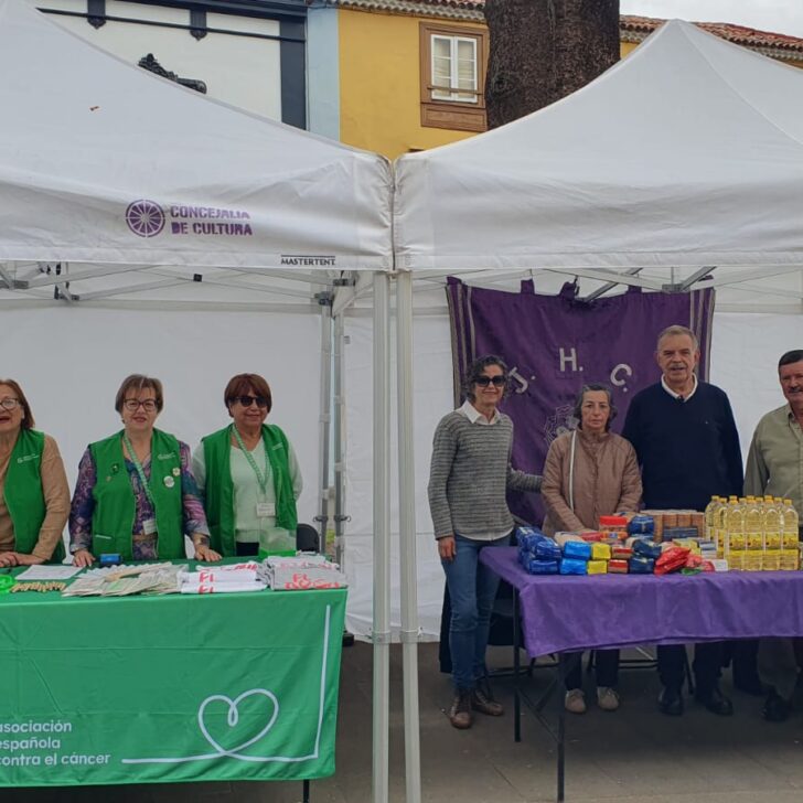 Esta mañana hemos hecho una recogida de alimentos, con la colaboración de la Concejalía de Cultura, que han sido entregados a las Madres Filipenses y a los Hermanos Betlemitas, y una recogida de donativos con destino a Caritas, en dicho acto hemos compartido carpa con la asociación Española contra el Cáncer.