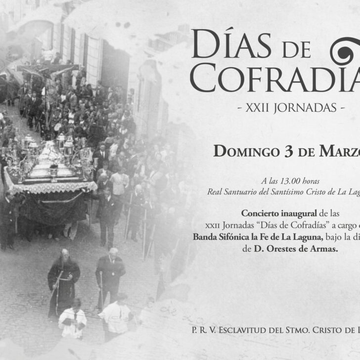 Ayer por la mañana empezaron las XXII jornadas “Días de Cofradías” organizadas por la Pontificia, Real y Venerable Esclavitud del Stmo. Cristo de La Laguna, con un Concierto a cargo de la Banda Sinfónica la Fe de La Laguna, a la que asistió el Esclavo Mayor de dicha Esclavitud, su Junta de Gobierno y el…