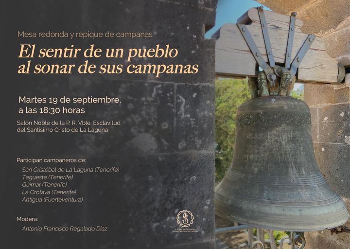 Hoy martes día 19 de septiembre, a las 18:30 horas, tendrá lugar en el Salón Noble de la P.R. y Vble. Esclavitud del Stmo. Cristo de La Laguna, la mesa redonda “El sentir de un pueblo al sonar de sus campanas”. Contará con la participación de diferentes campaneros de nuestro municipio, así como de esta…