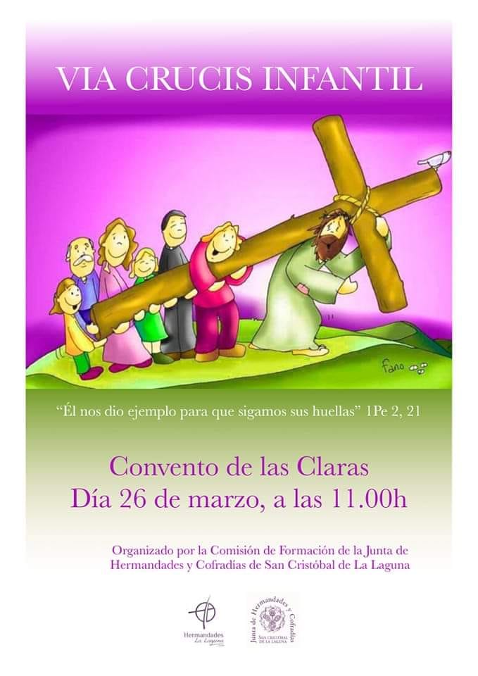 El pasado 26 de marzo, tuvo lugar en el Claustro del Museo de Santa Clara, el primer VIA CRUCIS INFANTIL, organizado por la Junta de Hermandades y Cofradías de San Cristóbal de La Laguna (JHC). La idea era: ¿C ómo explicar a un niño la historia de un hombre arrancado del afecto de sus…