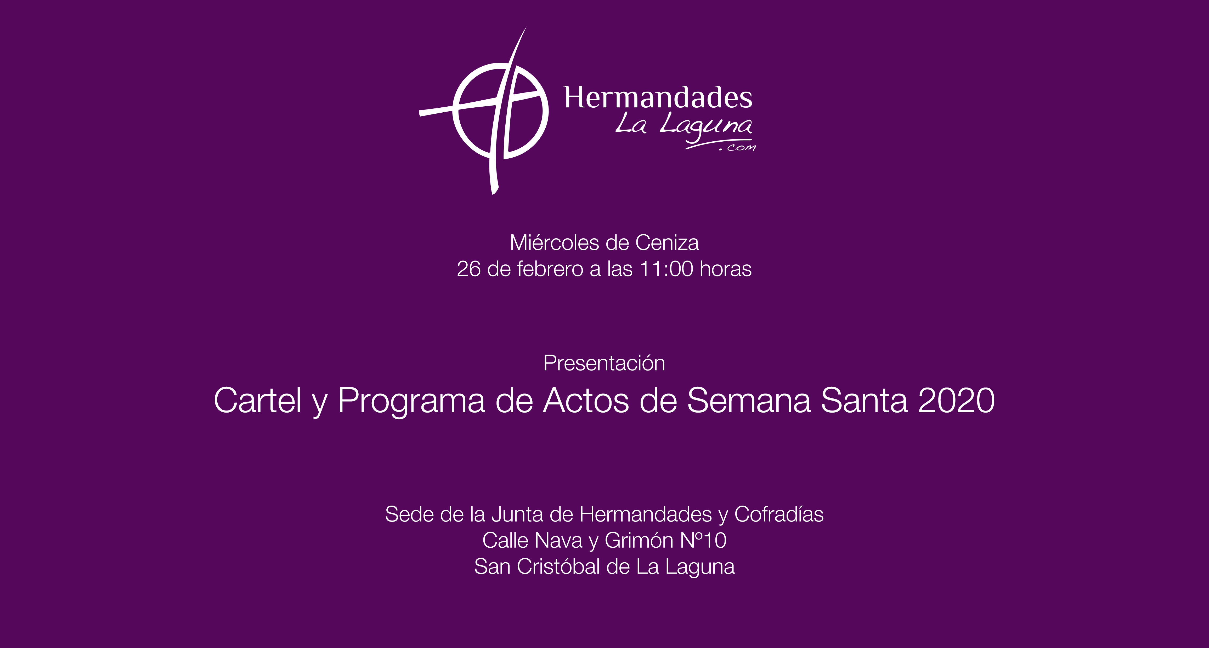 Hoy Miércoles de Ceniza tuvo lugar la presentación del cartel de Semana Santa de La Laguna 2020. El acto se celebró en la sede de la Junta de Hermandades y Cofradías de San Cristóbal de La Laguna, en donde también se dio a conocer la programación de actos de esta edición.