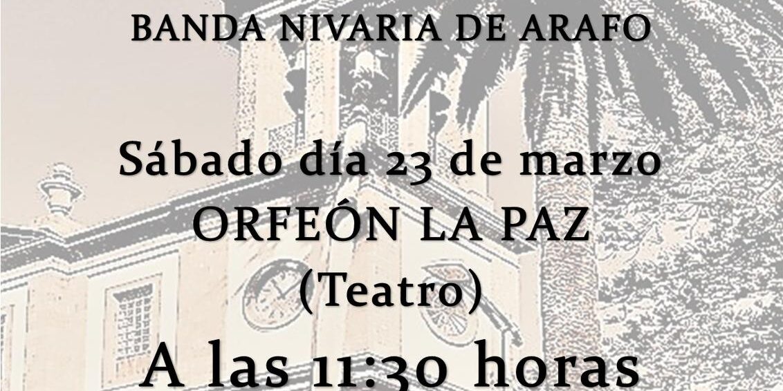 Mañana habrá un Concierto en el orfeón La Paz, de la Banda Nivaria de Arafo, a las 11.30 organizado por la Junta de Hermandades y Cofradías de San Cristóbal de La Laguna, con la Colaboración del Ayuntamiento de La Laguna.