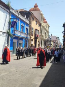 El día ha comenzado con la procesión desde la parroquia de Santo Domingo de Guzmán del Santísimo Cristo Resucitado, acompañado por la Venerable Hermandad del Santísimo Rosario, Nuestra Señora de la Soledad y Santísimo Cristo Resucitado.
