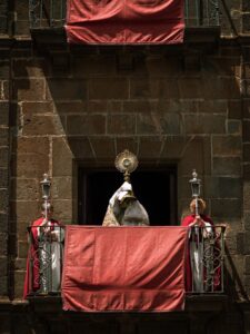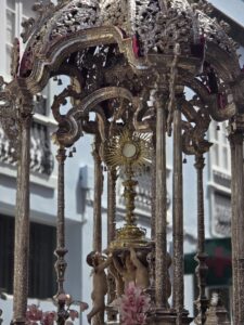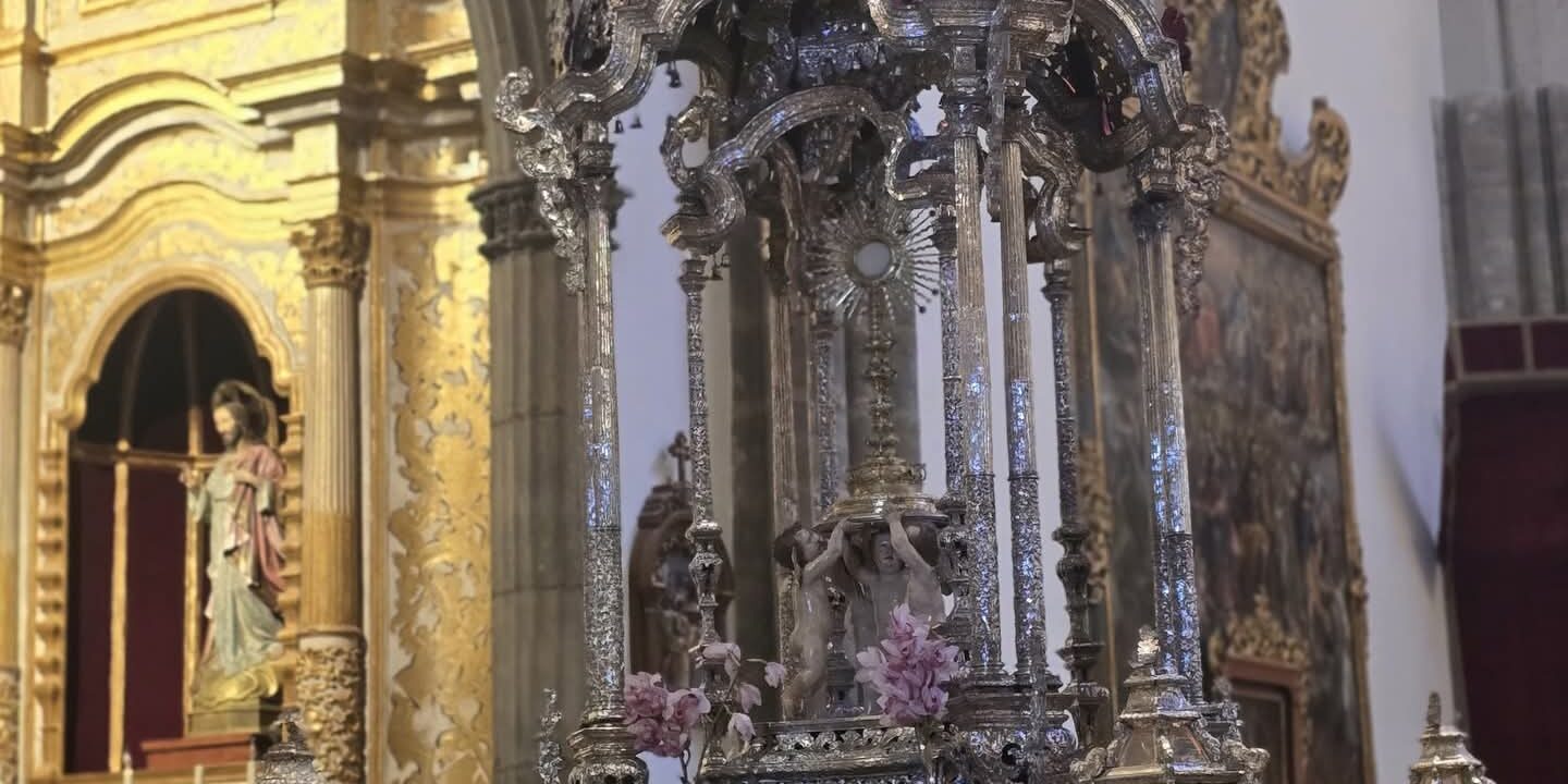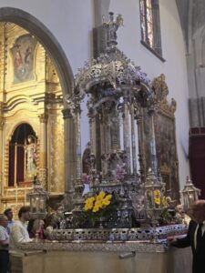 Posteriormente, a las 12:00 horas, en la catedral, tuvo lugar la misa estacional, presidida por nuestro Obispo D. Eloy Alberto Santiago y, finalizada la misma se realizó el traslado de S.D.M. hasta la parroquia de Nuestra Señora de la Concepción, donde tuvo lugar la solemne bendición del Sr. Obispo desde el balcón de la Torre de la Concepción.