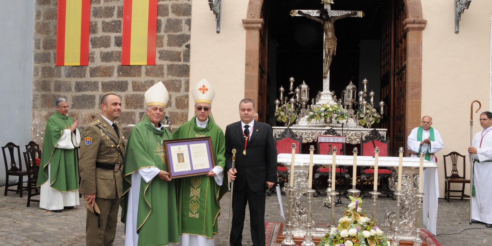 El pasado domingo,16 de junio, se celebro en el Atrio del Santuario del Stmo. Cristo de La Laguna el acto de nombramiento del Santísimo Cristo de La Laguna como especial protector del Regimiento de Artillería Nº93. Aparte de la Pontificia, Real y Venerable Esclavitud del Srmto. Cristo de La Laguna y numerosas autoridades, asistió el comité ejecutivo de la JHC.