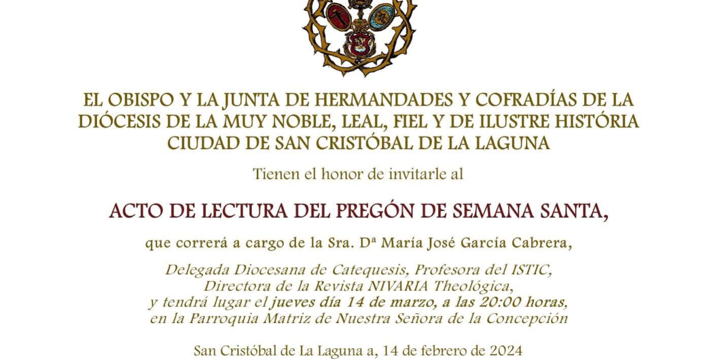 Y tiene el honor de invitar al Pregón de nuestra Semana Santa.