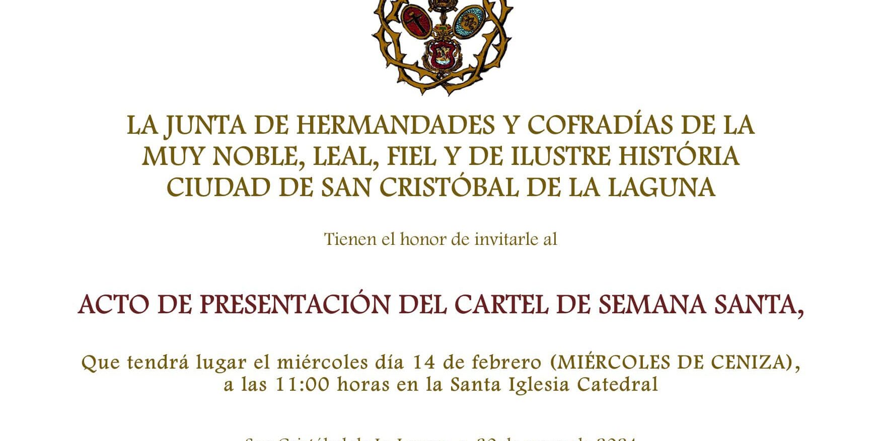 Tiene el honor de invitarle al acto de presentación del CARTEL DE LA SEMANA SANTA DE LA LAGUNA 2024.