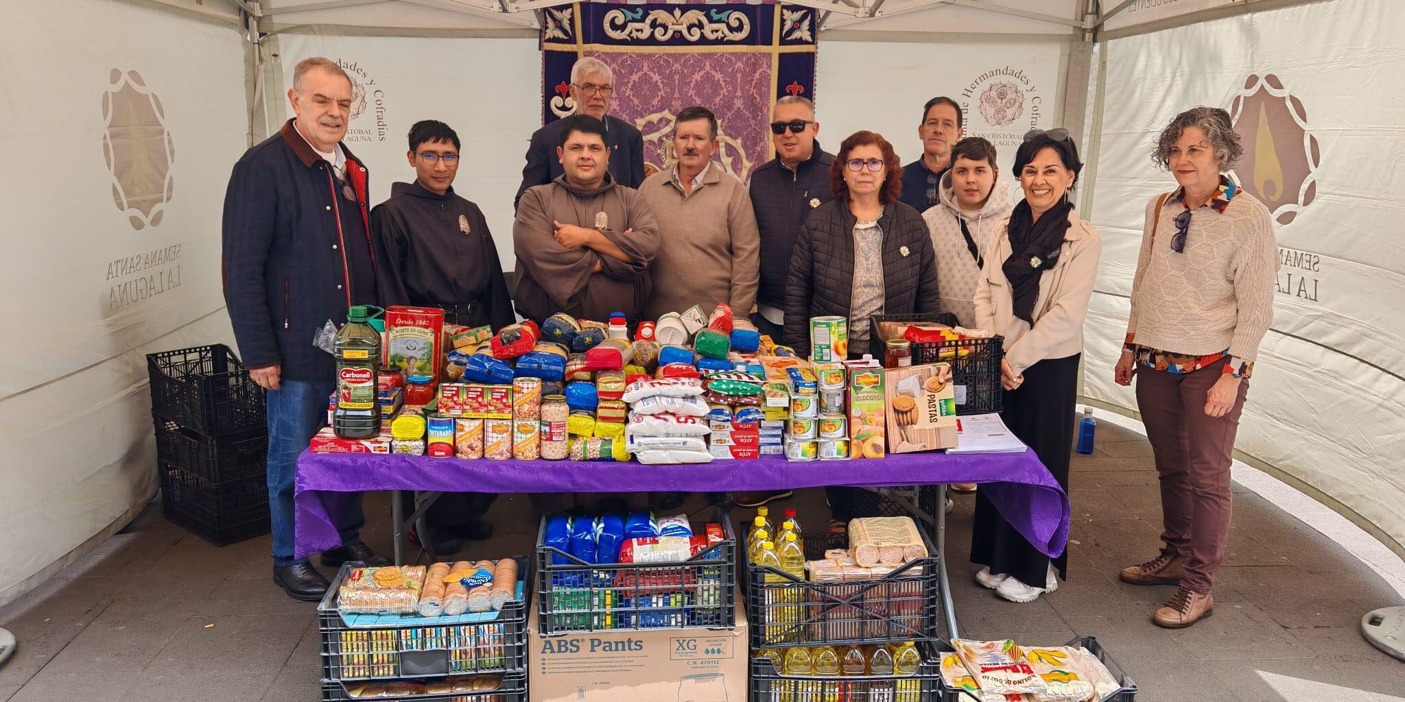 Hoy, Jueves Santo – Día del Amor Fraterno, la Junta de Hermandades y Cofradías de La Laguna organizó una recogida de alimentos a favor de los Hermanos Bethlemitas. Se recogieron unos 400 k.
