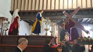 La situación de alerta meteorológica hizo que el vía crucis tuviera que realizarse en el interior de la Parroquia de San Benito y no desde la Parroquia de San Benito hasta la Parroquia de San Lázaro, como estaba programado.