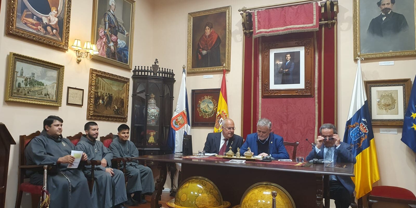 Ayer en la Real Sociedad de Económicas de Amigos del País de Tenerife bajo la presidencia de su Presidente D. José Luis Soliño y acompañado por el Cofrade Mayor D. Tranquilino Velázquez y el Teniente Cofrade D. Antonio Rodríguez inauguraron las XXIII Jornadas Cofrades dedicadas a la Vida Religiosa y a la Educación.